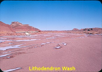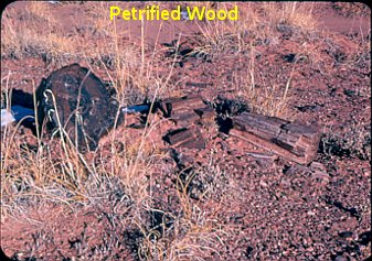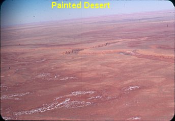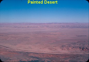On the next day I skirted the west side of Phoenix, and followed the highway up to Flagstaff. I was indicating 95 mph, but below me on the highway, a muscle car was beating me on the straight stretches. I only got ahead of him by cutting the corners. I headed east out of Flagstaff. I regret passing so close to Meteor Crater without realizing it, and missing the opportunity to fly over it. However, when I got to Petrified Forest Nat’l Monument, I landed in a dry wash, and took in the petrified trees up close and personal.