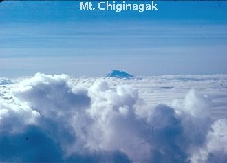According to the chart, this was Mt. Chiginagak. I circled the snow-capped 7031 foot volcanic cone and was surprised to find a plume of yellow vapor issuing from the other side just below the top. Beyond were the open waters of the Gulf of Alaska. There was nowhere else to go with my limited range, so I flew back to King Salmon for more gas.