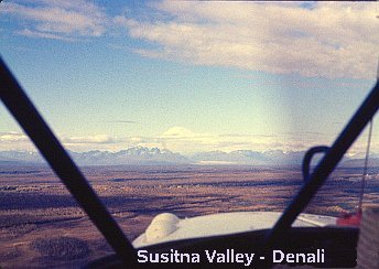 I made an early morning departure from Anchorage, heading north across the Knik Arm and up the Susitna Valley. Heading into the pass through the Alaska Range, a commuter airline Cessna 207 made a routine landing to drop off construction workers on the highway under construction below me. I traversed the Windy Pass in bright sunshine, and landed at Fairbanks Phillips Airport, where I camped next to the Taylorcraft for the night.