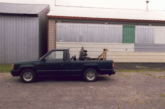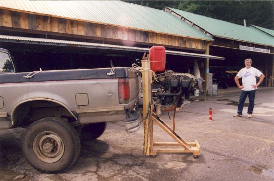 I took my wife, Cheryl, to Portland on Monday, July 17 to catch her flight to Indiana for a week long conference. At 6 am the next morning I was on the road to PA, for a 9½ hour drive, with the borrowed engine, a portable hoist and tools in the back of my pickup. I went right to work when I got there at 4:30 pm, and had my engine all disconnected before I hit the sack that night. The next morning I pulled my engine and set it down on the grass, then put Tom’s engine in place.