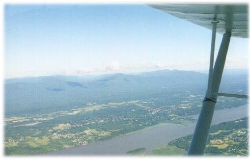 This is the story of my pilgrimage to Alliance, Ohio for the annual Taylorcraft Fly-in. I had the plane all gassed and ready to go the day before, so I was able to get off the ground at 5:30 on Friday morning, July 7th. There was a thin line of virga running through Jay which caused some concern, but after that I went up to 4500′, and it was clear and calm. It stayed that way; just sit with my hands in my lap and watch the scenery go by. I made a quick pit stop at Keene at 7:30. Nobody was awake there yet. I continued at 4500′ over Great Barrington, Old Rhinebeck Aerodrome and the Hudson River by Kingston.