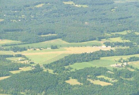 We couldn’t get the engine restarted. I ended up draining the carburetor float bowl two more times. While all this was going on a bear and two cubs wandered out and sat on the center line of the runway. They disappeared when my engine back fired. I had made pulling the prop through look like so much fun that I got Phil into doing it. Actually I was exhausted and ready to burn the plane and come home. I had a head cold, and it must have been 90 degress and 90% humidity. I would rather have laid in the grass under the wing and slept. Phil realized that even the Bonanza was a little hard to start because of the high density altitude. Cold Spring is at 1400′. We tried with the mixture pulled out halfway. Eventually this worked. We hurriedly packed everything up and did a radio check. The batteries in my handheld had gone dead. We needed a new plan, and fast; it was now 4:30. Phil would pass me and wait at Great Barrington, Keene, and Windsock Village. If everything was OK, I would buzz each strip and fly on.