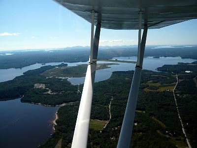 It was a pleasant flight on the way back, at 4000 feet over the broken cloud tops. It was just before the weekend of the Greenville Fly-in, and there was a lot of radio chatter from planes heading up there. The Greenville airport passed by in the distance as I headed west. I was back at Norridgewock by late afternoon.