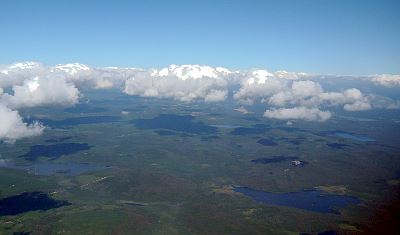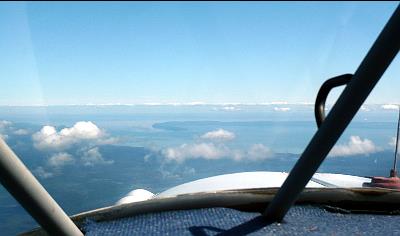 Suitably refreshed, I was off again at 12:30 EDT. Since I was going to need altitude anyway to cross the bay, I climbed up to 5500 feet to fly hands off in the smooth air just above the broken cloud tops. I passed just west of St. John.