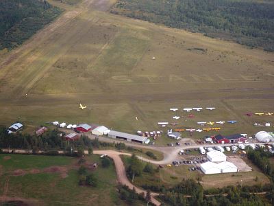 That night there was the usual bonfire between a pair of hangers, and heaps of boiled corn on the cob. Some fireworks went up from outer reaches of the airport. The next day, Saturday, there were a lot of arrivals, including a Canadian Forces Sikorsky S-61. On Saturday night was the annual fun and fund raising auction in one of the hangers, followed by a more comprehensive fireworks display. Next came a tram ride around the limits of the runways. We stopped far out in the dark and watched the International Space Station go over.