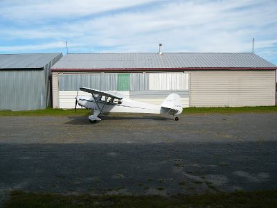 By the following Thursday the weather was perfect. I hung out at the Norridgewock airport, trying to bum a ride. Jeff Paine rose to the challange. He needed to circulate the oil in his Cessna 180, as he hadn’t flown much lately. So right after lunch we headed up. The trip didn’t take any time at all, at over 140mph. When we got there, my plane had just been pulled out of the big hanger to let someone else out, so all I had to do was pay my hanger rent and take off.