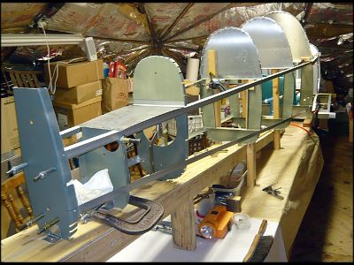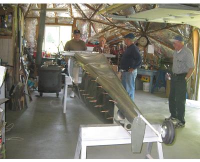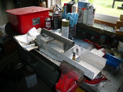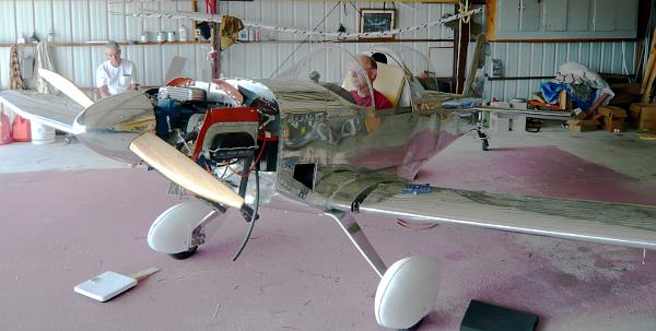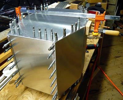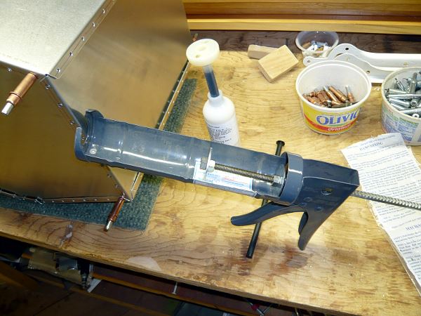 Rudder pedal in fixture for weldingForward fuselage jigged upTrying George Mays’ CX4 on for sizeJoy stick and PTT switch wiringTail bulkheads jigged upFast back bulkheads in placeF12 bulkhead set up for RV tail springTail spring socket in welding fixtureRV-style tail spring socketPicking up a sheet of .020″ aluminum at Yarde Metals3/4″ square aluminum roll bar & repurposed electrical cable trayF7 bulkhead & shoulder belts installedBaggage door & shoulder beltsThis door is available in kit formElevator control horn in jig for weldingElevator control horn finishedFuselage top skinnedInstrument panel less switchesThe cleanest the shop has been in a long timePreparing to slide the fuselage down from the loftDown, with no dents or scratches; I’m the one with the big smileBoth projects in place at ground levelWelding engine mount clustersThree engine mounts completedTransporting a GP-2300 engine kit home in my TaylorcraftTrial fit of the Diehl rear case and engine mountSkeletal tail fin & rudderTail fin & rudder skinnedRudder pedal return springsRV tail spring, Screaming Eagle tail wheel and Harmon Rocket steering linkRFIO access opening kits from http://www.mykitairplane.com in place on the tailRFIO access opening kits from http://www.mykitairplane.com in place on the tailTony Gallo inspired grab handle, Gate House brand, item # 0226999 from LowesTail access opening with cover & Rudder stop in placeRIOK rudder pedal access opening kit from http://www.mykitairplane.com in placeRIOK rudder pedal access opening kit from http://www.mykitairplane.com in placeRudder pedal access inside viewRudder pedal access inside viewAntenna access opening copied from http://www.mykitairplane.com FPFK kitAntenna access opening copied from http://www.mykitairplane.com FPFK kitJust about ready to sit inRV10 vent kit-some assembly requiredAir vent installedFront of completed instrument panelPanel back with main buss stripFinished trim tabMounting hole for Ray Allen servoCompleted horizontal stabilizer & elevatorsTrim tab closeupThese offset snips do a good job of cutting .040”, but it takes strong hand..both of them.The side piece is all cut and marked for bending.The last piece bent was the bottom. I bent the side 90 degree flanges first, one pass each side. Then the piece was passed through the brake for other bends. If the notches are cut at 60 degrees, the brake will be stopped by the side flanges at just the right angle for the bottom end flanges.The rivet holes are all locatedDrilling through the top piece to transfer rivet holes to the filler flange before installing nut platesI made a spool piece out of a carriage bolt and 5/16” fender washers, which were a perfect fit inside the sealant tube. This allowed use of a regular caulking gun. The directions say to remove plug inside the tube; I left it in and used it to push the sealant out without messing up the caulking gun.Old screws cut off and turned to a point, inserted in filler flange mounting holesFuel tank cover was clecoed in place and tapped lightly to locate screw holes and center of fly-cut openingFinis! I riveted up the side and the top piece, then applied sealant inside the top and side seams, over the nut plates and under the outlet flanges – before riveting them also. Then I put a bead of sealant around inside the bottom piece flanges before pressing that into place and riveting, with a dab of sealant on each rivet shank. I finished up by dabbing sealant in all the bottom rivet dimples. It took less than half of the 6 oz Chem-seal tube.