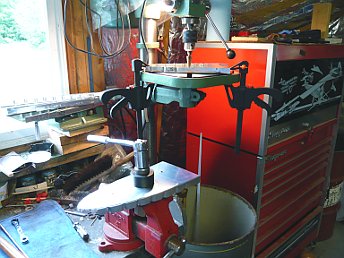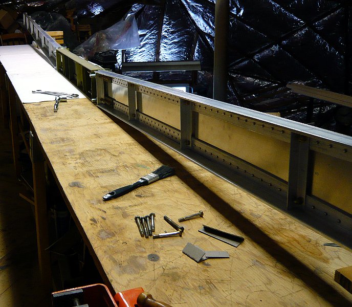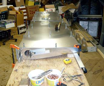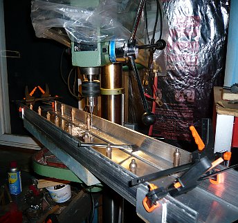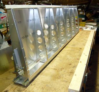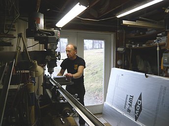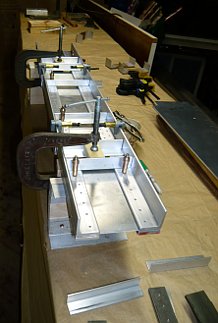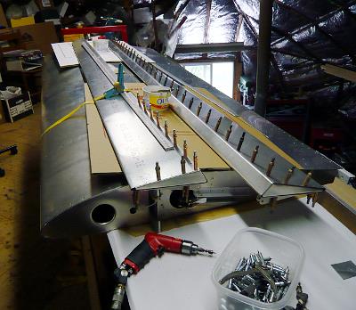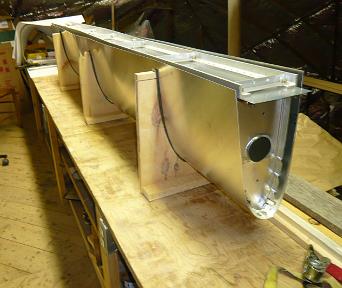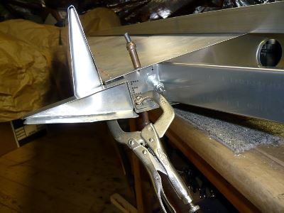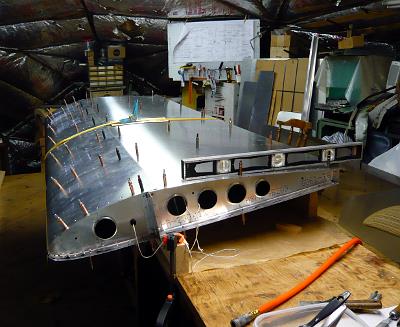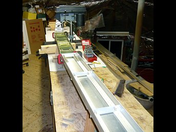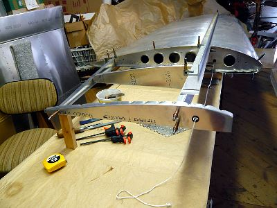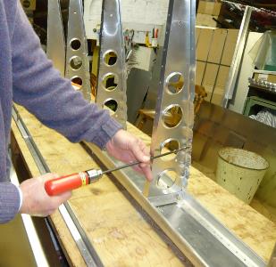 Picking up material at Dillsburg Aeroplane Co.Milling wing spar capsMilling wing spar capsMilling wing spar capsCutting out skins using laminate shearsOffset tin snips are better!Using a hole punch for rib lightening holes; not good.Holes came out undersized and some cracked during flanging.Fly cutting main rib lightening holes.Fly cutting works much better than a hole punchFly cutting works much better than than a hole punch.Flanging main rib lightening holes by driving through a PVC plug.Flanging main rib lightening holes by driving through a PVC plug.Drilling center section rivet holes.Drilling through angles.Arbor press modified with a rivet set.Squeezing rivets with arbor press.Drilling holes for wing bolts.Drilling holes for wing bolts.Completed wing spars.Fitting leading edge skin.Layout out rivet spacing.Leading edges drilled.Wing bottom skins drilled.Drilling rear spar rivet holes.Bottom skin installed.The start of the first wing.Deburring hard to reach places.Riveting bottom skin.Riveting top skin.Assembling ailerons.Piot tube installationPilot tube installationMilling control stick slotControl stick locked in w/Fokker clampsWing extension frame-upFinished wing extension – My skins cut according to the cookie sheets weren’t big enough, especially if LE & TE bends aren’t located just right. While recutting the skins I made them longer, so that they extend 3/4″ beyond the last rib for tip attachment later.Trailing edge rib at point GSecond wing, front spar attachmentRear spar and G-rib attachmentWing extension jigges in alignmentLaying out rivet holes