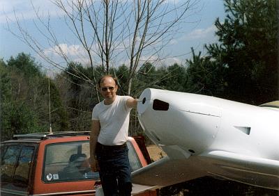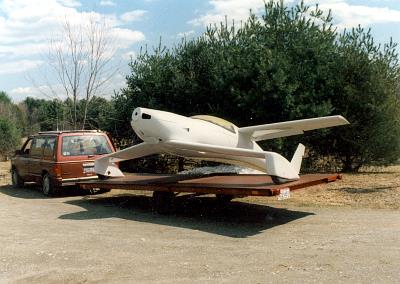 1984 Building wheel pant on canard1985 Canard installation on fuselageWing installation on fuselageForming canard root filletsSurfacing Q2 wing bottomInstalling brake lines1986 Airframe primed for UV protectionLoading up to go to mall displayQ2 in EAA display in Bangor Mall in May 19861987 After paint job by my neighbor across the streetLoading for transport back to ConnecticutBye, bye!
