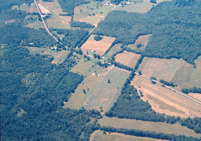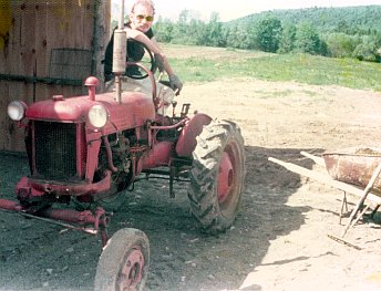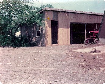 I let neighbor, Bill Stevens, plow up the field for silage corn for his dairy cattle.My property is in the centre of this picture. The Merry air strip is up the street, at top left. Stevens’ farm is top center on the left fork of the road.Summer, the dome has been shingled, and the wood shed is going up.The shed is finished with salvaged splash boards from the Madison dam. The yard is graded. I bought the 1949 Farmall Cub from David Merry for $800.My younger brother, Ricky Bedford, came to visit.Getting civilized with glass windows and skylights, wringer washer tub planters, permanent electric service and septic system.Harvest time in the field next to the house.Fall, the view out the back window.